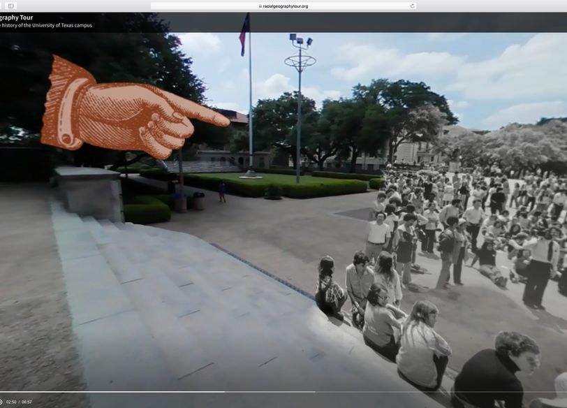 An immersive 360-degree tour of the University of Texas at Austin's campus, exploring the controversial and evolving history of the campus geography and history. The virtual tour includes a dorm named after a Grand Dragon of the Ku Klux Klan, recently removed Confederate statues and flags, and the interplay of race and gender in the structure of the campus and greater city of Austin, TX.